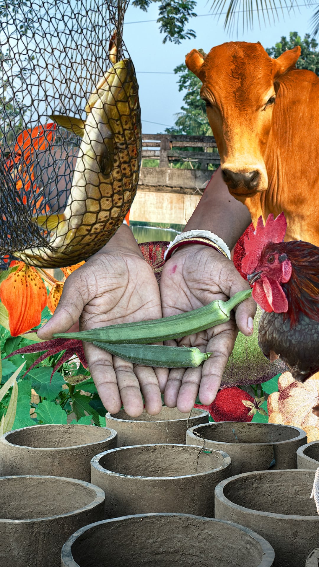 Everything she needs to plant, grow, harvest nutritious food, sell surplus at market, and support her household and community.